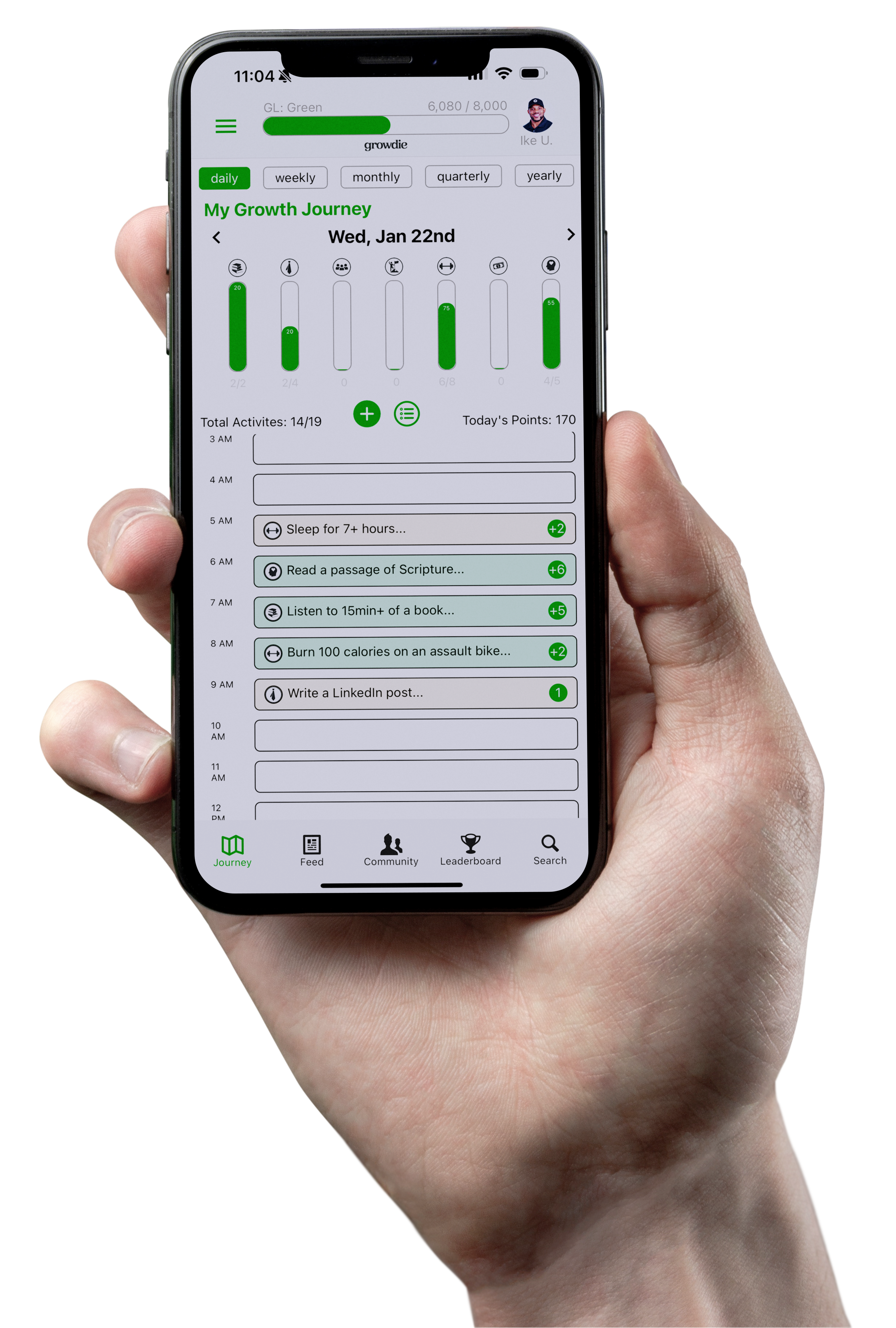 Designed for leaders hungry for growth, Growdie combines accountability, action, and gamified challenges to help you excel in every area of life. From personal development to fitness, play, and professional milestones, you’ll track your progress with goals tailored to your lifestyle.